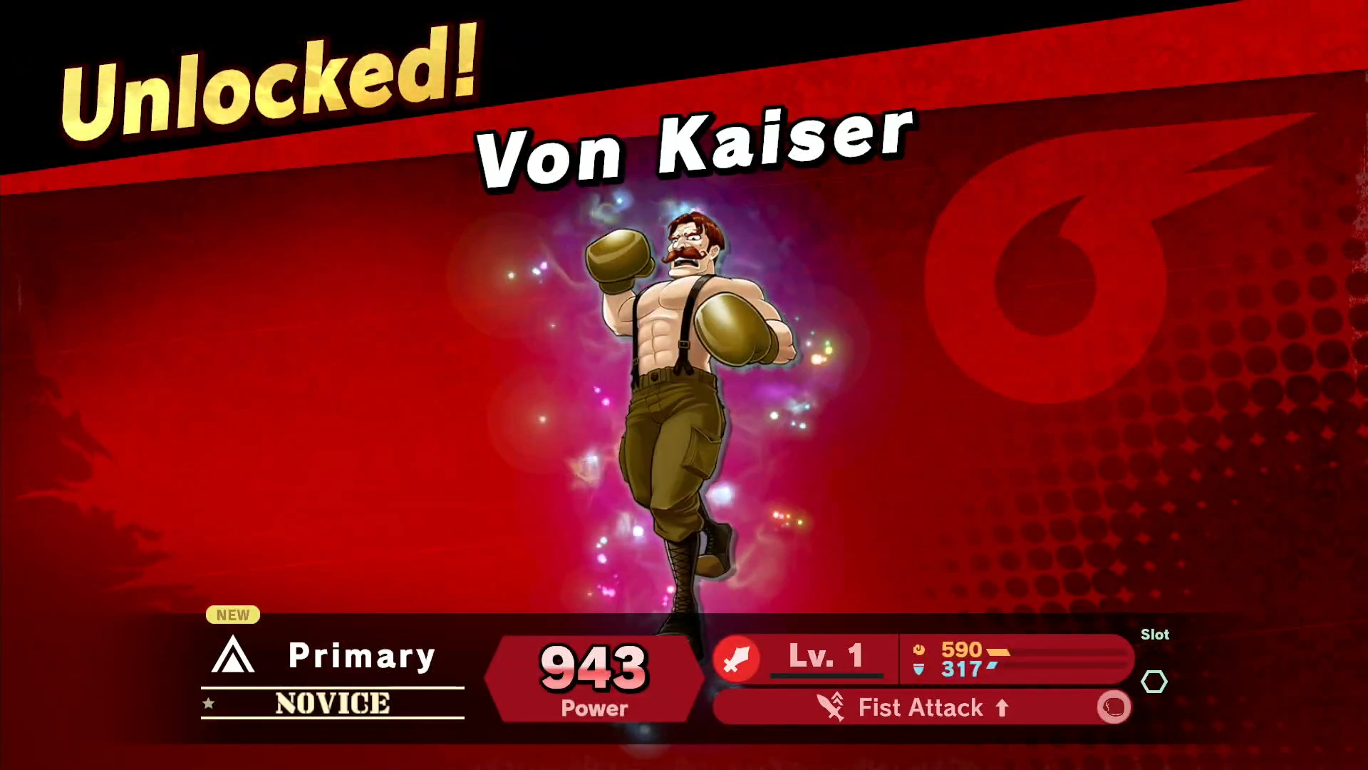Von Kaiser makes an appearance in Super Smash Bros. Ultimate as a spirit. In his spirit battle, he possesses the body of a Mario puppet and the battle takes place in the Boxing Ring stage. The battle is a stamina battle and has the puppet's punch and elbow based attacks do more damage, as well as the Mario puppet preferring to use side smash attacks. Upon beating the battle, Von Kaiser's spirit is acquired. Von Kaiser is a novice level primary attack spirit that boosts the damage of all fist based attacks when equipped.