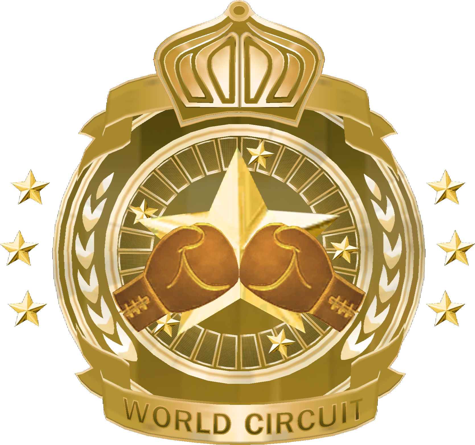 The World Circuit insignia is a lion, with a beige ring with red, white and blue ropes, brown for the display character intros and honey orange background color for the fighter's portrait.